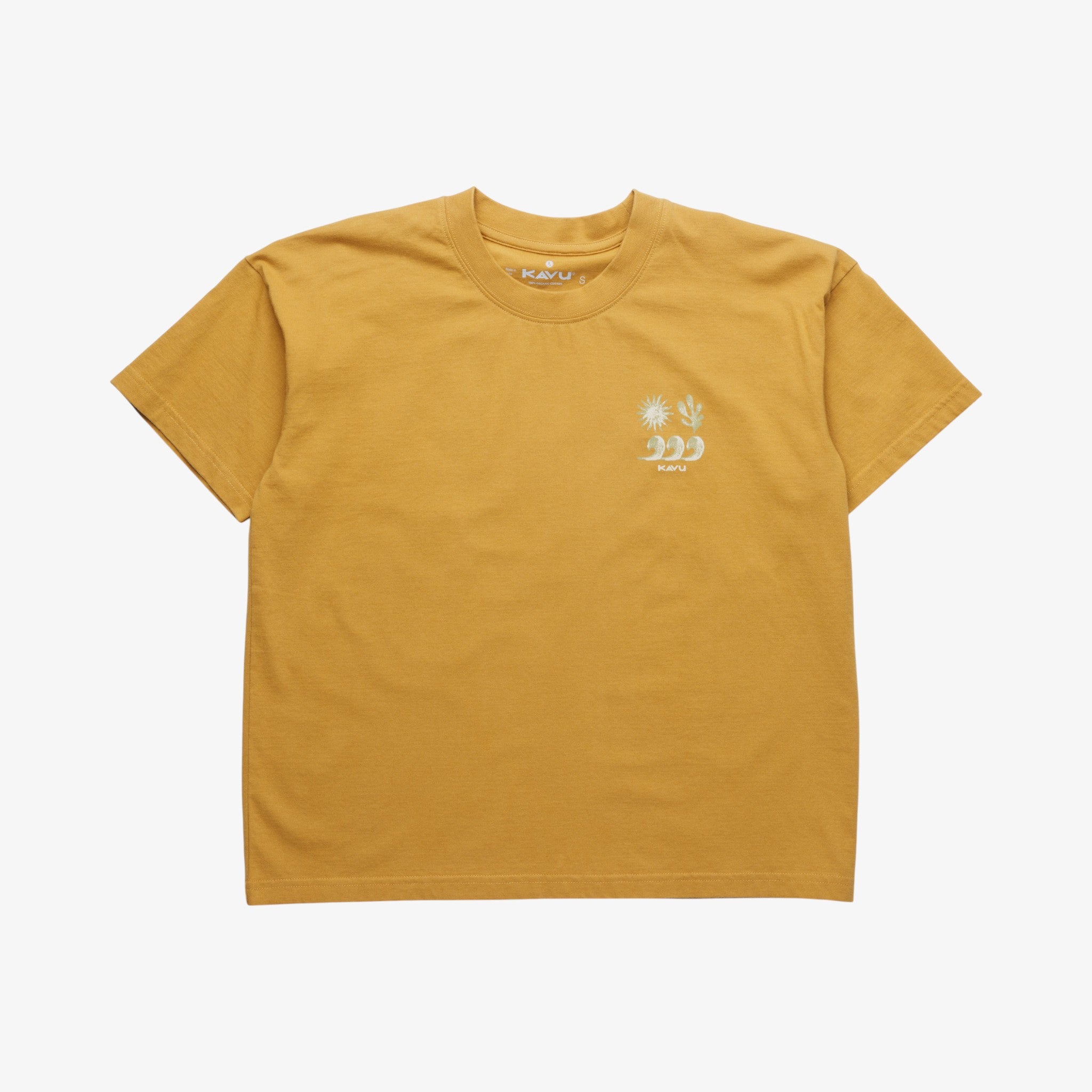 The Kavu Salt Beach T-shirt in Wood Thrush is a comfortable essential built for everyday wear. This relaxed-fit short-sleeve tee features a classic crew neckline and a straight hem for timeless style. A screen-printed design adorns the front or back depending on the colourway, adding visual interest. The heat transfer back neck label ensures comfort against your skin. Crafted from 5.5oz hypoallergenic certified organic cotton jersey knit, this tee supports your skin and the environment with every wear. Soft, breathable, and versatile, it's the reliable foundation piece your wardrobe deserves.